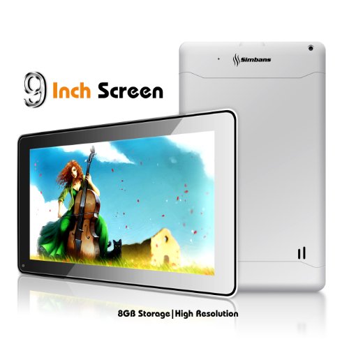 Simbans (TM) 9 inch Tablet - Beautiful Design. PROMOTION: Get upgraded to DUAL Core and DOUBLE the RAM if buy this week Basic Configuration Processor: A13 1.2Ghtz; GPU: Mail-400 Screen: 9 Inch. 16:9 capacitive 5-point touch screen. Resolution: 800*480 pixels ScreenStorage: 8 GB NAND FLASH; Can be upgraded to 32GB via micro SD cardRAM: 512MB DDR2Operating System: Android 4.0G-sensor: YESCamera: 0.3M Front Camera Sound Recorder: Support, built-in microphone for long time audio recordingWi-Fi: Support: IEEE802.11b/g/n Ports and InterfacesAudio Interface: 1 x 3.5mm earphone jackUSB Interface: 1 x micro USB jackMemory Card Slot: 1 x TF card slotPower Interface: 1 x DC-InWhat is inside the box1 x Tablet PC 1 x Charger 1 x User Manual 1 x Micro USB Cable 1 x USB (F) to Micro-USB (M) Adapter