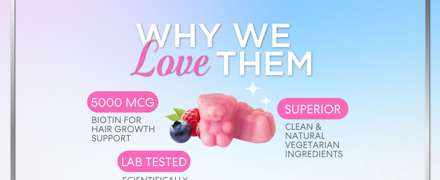 Hair Vitamins Gummies deliver a potent 5000 mcg dose of Biotin combined with Vitamins C, E, and Zinc in a non-GMO, gluten-free, vegetarian gummy format designed to support stronger hair, radiant skin, and healthier nails for both women and men.