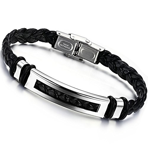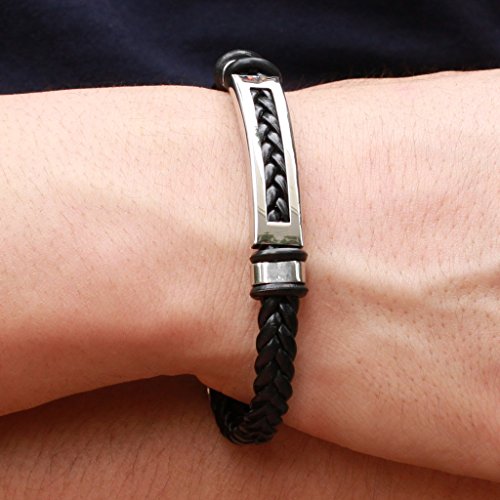 Men's braided leather bracelet with a stainless steel clasp. This measures 8 1/2 inches. The bracelet is 8mm wide.
