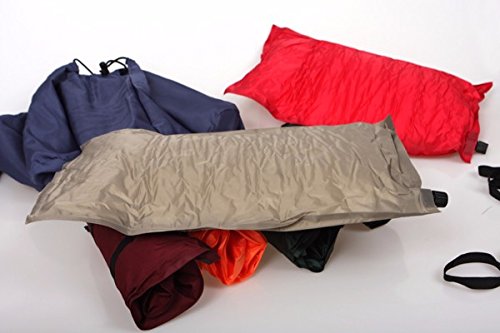 This is by far the best camping and travel pillow available protected by a Lifetime Warranty! Self Inflatable: This highly comfortable travel camping pillow will auto inflate to the perfect thickness in seconds! Adjustable Inflation: If you prefer a softer or firmer pillow simply use the easy rapid inflation/deflation valve to blow air in for a firmer pillow or push air out for a softer pillow. Because of the high rebound sponge pieces inside of this pillow you can get the perfect comfort in the outdoors, on a plane or where ever you need it. Durable: The PVC coated polyester material that this pillow is designed from makes for a very comfortable but durable pillow. Water Resistant: The PVC Coated 100% Polyester design of the fabric make this pillow highly water resistant. Light Weight: At only 9.5oz this pillow is truly lightweight and the included elastic bands and stuff sack help you compress this pillow down so it takes up almost no space in your backpack, carry on or whatever you carry it in. Inflated Dimensions: 15.75" Long X 11.81" Wide X 2.76"+ Thickness (Depending on Inflation) Compressed Dimensions in Stuff Sack: 11" X 4" X 4" Weight: 9.5oz This pillow is great for campers, backpackers, military, commuters, road trips, air plane rides or anyone who needs a comfortable lightweight portable pillow. If you are unhappy in anyway with this pillow simply send it back for a full refund! Click the BUY button now to get your new favorite pillow!