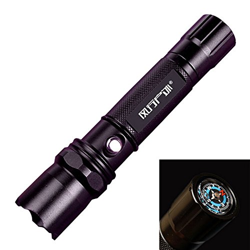 Specifications: * Material: Aluminum alloy * Number of Emitters: 1 * Working Voltage: 1.2~3.7 V * Max Flux: 210 Lumen * LED bulb: CREE LED * Battery Configuration: 1 x 18650 battery(Not included) * Runtime: 3-12 hour * Switch Location: medi tap switch(water proof) * Lens: Optical Glass * Reflector: Aluminum Smooth / SMO * Beam Range: 100-200m Package includes: 1 x Strong Light Tail Compass Rechargeable Led Flashlight 18650 Small Torch 1 x Direct charger Kindly note: Compass is just a decoration