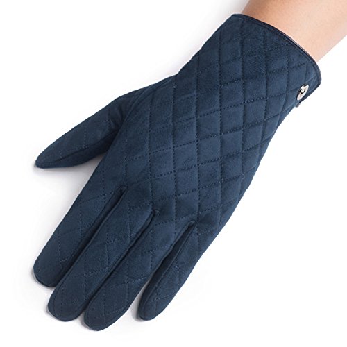 Mens Touchscreen New Black Deerskin Palm Fleece Back Gloves Navy Blue