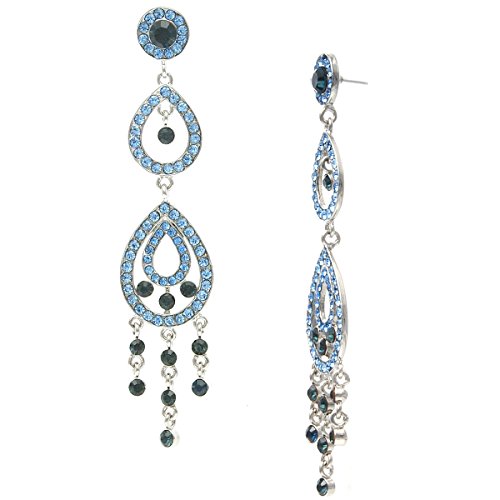 Pear-shaped drops distinguish stunning drop earrings patterned in a rich pave of sparkling blue stones. 3 7/8" drop; 3/4" width. 0.6 oz each pair. (8.9 cm drop/1.7 cm width/16 g weight) Post back. Rhodium plated. For pierced ear.