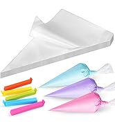LotFancy’s 18-inch disposable piping bags come in a pack of 100, made from extra-thick 0.08mm food-grade plastic to prevent bursting under pressure. Each bag includes 5 reusable sealing clips for secure storage, allowing mess-free decorating of cakes, cupcakes, cookies, and more. Designed for professional and home bakers seeking durability, versatility, and convenience in one premium package.