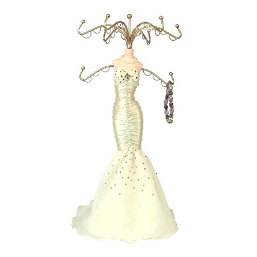 This unique item is perfectly designed for those who love jewelry and fashion at a same time! Featuring beautiful glitter bridal dress and sparkling crystal accents, this hanger doll will bring out fun and little surprise in any places. Holds standard sized earrings.