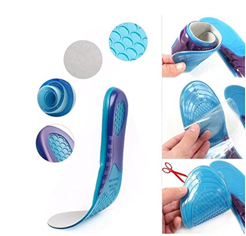 Features Keep your feet in total comfort with these silicon gel insoles. Made with medical grade silicon and designed for total arch support and impact absorption, you will feel like you are walking on air. Use these gel insoles for walking, standing, hiking, running, golfing, basketball, any activities that requires your feet to perform at its best. Instruction Hand wash with warm water and soap,natural air drying. Package Includes: 1 Pair of insoles .