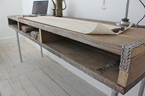 Reclaimed Scaffolding Board Industrial Chic Extra Long Desk with Built In Storage and Galvanised Steel Legs - works perfectly in a sophisticated urban casual living space. This double desk can be made to measure to your own specifications. The item pictured here is 2400mm long, 660mm wide and 890mm tall... but the sky's the limit... please contact us to discuss any ideas or obtain quotes. The steel legs have little plastic caps fitted on the bottom so it won't scratch floors... Everything we do is made to order and because we design and make everything ourselves we can easily accommodate any design requirements you might have... just contact us for a chat... pretty much all of our listings are a result of other client's requests so prices are indicative of a bespoke product - the price won't dramatically increase because you want to add a few centimetres here or take a few centimetres away there - we're not importing and selling hundreds of products of a particular size... we make everything ourselves from raw materials in our own workshop here in Manchester... ... We just love what we do and love to provide a great bespoke service... why buy off the shelf when there's just no need to... we can create something totally unique for you ! Custom design work is our niche and what we love to do. We are experienced at creating custom designs on every level, from homes to commercial spaces. Any and all custom design requests are welcomed and encouraged. All options are made to order. No items are kept in stock - I know it says we have 1 of everything in stock, but that's just because we can't enter a zero value on the Etsy system !