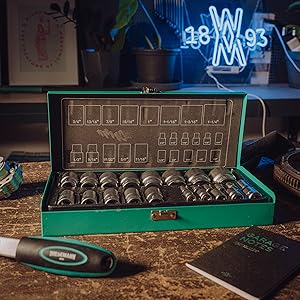 The WIESEMANN 1893 Socket Set includes 24 hexagon socket inserts in both 1/4" and 1/2" drive sizes, crafted from high-quality Q-30 steel for durability. The set comes in a lockable transport case for easy organization and transport, ensuring that every tool is securely in place. With a legacy of over a hundred years in tool manufacturing, WIESEMANN 1893 guarantees traditional German quality for both professionals and DIY enthusiasts.
