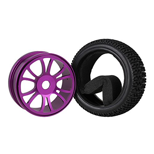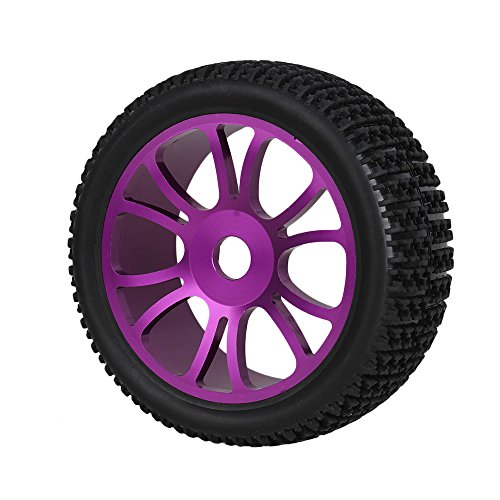 It fits for RC 1:8 off road Car T-word Pattern tyres are made of rubber ,with sponge inside. Dimension: Tire outer diameter:112mm/4.41 inch Tire inner diameter: 85mm/3.34 inch Wheel diameter: 88mm/3.46 inch Tire Width:43mm/1.69 inch Wheel drive hex:17mm/0.67 inch wheel spoke: 12 Material: wheel rim: aluminum alloy wheel tyre: rubber Color: Tyre:black wheel rim: purple Weight:731g Note: The tyres and wheel rims are separated, you need to assemble and glue them together by yourself. Package include: 4 x tires 4 x wheel rims