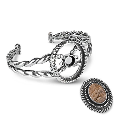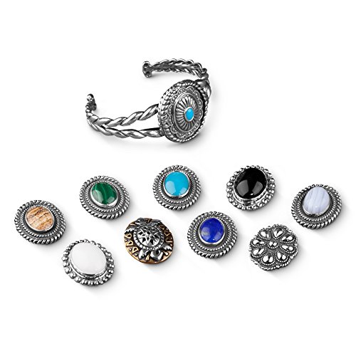 Fashionable versatility. Your style is your story so tell it your way! This bold bracelet comes with a magnetic insert set with a stunning oval picture jasper cabochon and layers of detailed sterling silver design. Adding to the versatility of the piece, the insert can be swapped out for your choice of other available American West Jewelry magnetic inserts (1-15XX-000, SOLD SEPARATELY), completely transforming its look to fit your mood and wardrobe. *Note: Color may vary due to characteristics of the natural stone. Featuring gemstones from around the world, our jewelry is proudly made in America with US and imported parts. We do our part for the environment by crafting our jewelry from recycled .925 sterling silver.