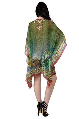 Women's Short Kaftan. Beautiful Print with Hand Work. See-through material, can be worn as Bikini Cover up on the Beach. Or you can wear spaghetti under it and team it up with Skinny Jeans.