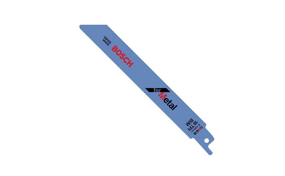 Bosch RM618 6-Inch 18T Metal Cutting Reciprocating Saw Blades combine bi-metal construction with a flexible thin-kerf design and precision 18 TPI teeth to deliver fast, clean cuts in sheet metal. Engineered for durability and accuracy, these blades feature a reinforced pair-setting tooth geometry and optimized blade height, making them ideal for professional-grade metal cutting tasks. Available in a convenient 5-pack, they ensure you stay efficient and ahead on every project.