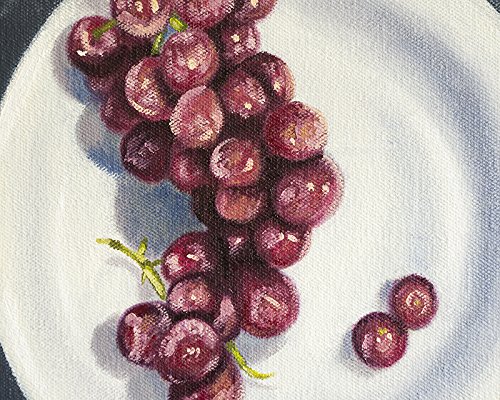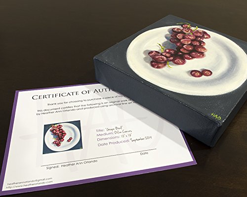Original grapes painting ready to hang in your home! Title: Grape Bowl Size: 10 x 10 x 2 inches Medium: oil paint on stretched canvas, protected with Gamsol varnish All art is produced using artist grade oil paints and mediums. Your original painting will have the artist's signature on the front and the title/date on the back. A certificate of authenticity will be included. This painting surface was handmade using 100% cotton duck canvas stretched over select pine bars and finished with high quality gesso. It has a gallery depth edge of about two inches and comes with a wire on the back for hanging. All edges are painted so that the artwork can be hung unframed if desired. Each painting is wrapped securely with acid-free tissue, kraft paper, bubble wrap, and then cradled in a sturdy cardboard envelope before being put into the final shipping box. After cleared payment, I ship in 1-3 business days via USPS. *** Please note that color can differ slightly from monitor to monitor *** © Heather Ann Orlando
