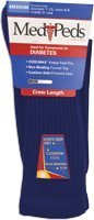 (SOLD BY PACKAGE 1/PR) Medipeds Diabetic Crew Sock, Medium, Navy. Nonbinding, therapeutic socks are sensitive on legs and ankles. Extra-wide funnel top reduces pressure on legs and ankles. Soft cushion soles and smooth toe seams prevent foot irritation and abrasion. Coolmax(r) pulls moisture away from skin to keep feet dry and blister-free. Crew length. Three pairs per package. Navy. Medium (women's shoe size 7 - 10; men's shoe size 6 - 9). . Brand: Americal