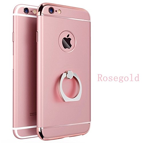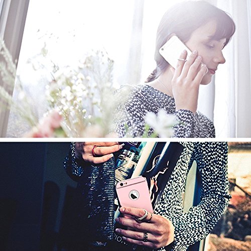 Creative structure,3 in 1 Design:3 parts combination,elegant colors and fashion & luxury & Modern designs with functional features for your iPhone;Super Metal textured to touch, Extreme aesthetic and durable electroplate frame, Special processed painting craft.Feels so smooth and elegant as classy silk,anti-slip & anti-scratch.It's not bulky and looks great,feels so great,and perfect for your iPhone 6 and iPhone 6S.I am you are gonna love it; This case is made up of 3 parts:PC front Case,PC back Case,it's very sturdy and well built.Micro-sand process,anti-sweat,anti-fingerprint that can perfectly protect your phone;Show off classic original LOGO; Aluminum Ring kickstand:Allow you reach more parts of the screen safely with one hand,this elegant ring kickstand,Make you enjoying movie with a relaxing way,you can select the most angle fo the tilt when watching a movie; 360-degree protection:Precise Cut Out and buttons are easy to press,cellular hole design perfect play original sound precise hole cut out make bottom ports easily accessible.especially the webcam in phone, your phone will not be scratched, soiled or broken by accident; Ultra-Thin Back Cover:Only 0.9mm and it can fit your phone perfectly and keep high touch sensitivity. Table Lay Design:The 1.5mm front lip protrudes out just enough to stop your screen from making direct contact with a flat surface; Raised Lip protection:The lips lift the lens,screen off flat,keeping away from scratches; Chrome:Acceted with a classy chrome finish to elevate elegant aesthetic,engineered to protect your phone upon impact. Design specially for iPhone 6/6S 4.7 inch & iPhone 6/6S Plus 5.5 inch; Colors:Black,Gold,Rose gold,Silver,Red