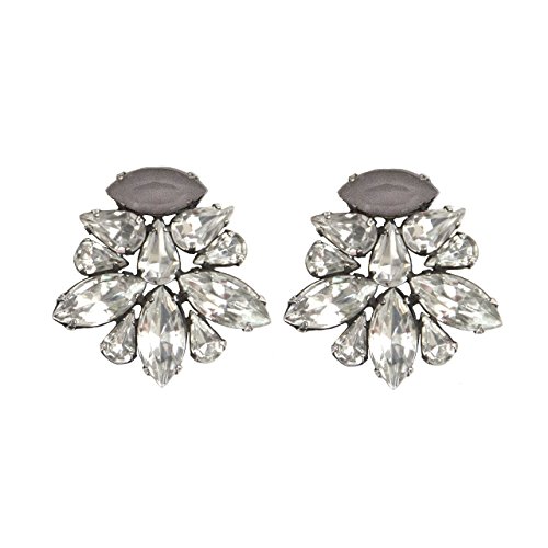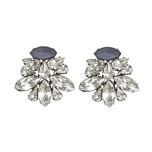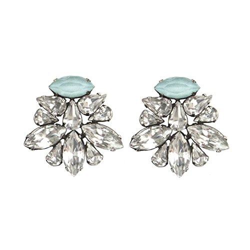 Oxidized silver-plated classic stud statement earrings with crystal cluster. These earrings take glamours to a whole new level. Available in crystal, cabernet, dusk, mint and slate hand colored stones. Handmade in New York with hand-set crystals and love. Measures: 1 1/4" long, 1 1/4" across. Each earring weighs: 7 grams. Oxidized finish deliberately darkens areas of the metal to allow for a one-of-a-kind vintage aesthetic. Please allow slight differences in each piece. Arrives in our signature SISOO gift box.