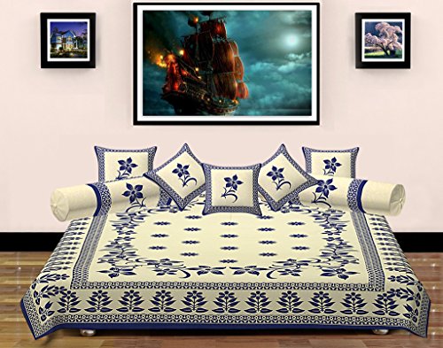 Package Contents: 1 Flat sheet With 5 Cushion Covers & 2 Bolster Covers