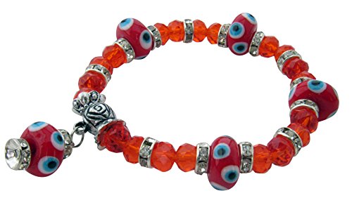 Beautiful Evil Eye Stretch Bracelet with Red Crystal Beads and Zircon Stones. Unique exotic design of its own. Top quality stones display amazing enriched clarity. Its unstretched length is 7". The diameter of the evil eye beads is 13 mm and the diameter of the other beads is 7 mm. In Greek culture, Evil Eye figures are believed to protect you from jealous and evil looks and brings you good luck. All our products are brand new and handcrafted in Istanbul. Free red velvet gift bag with every purchase.