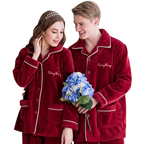 Gufuie Flannel Thermal Winter Matching Couples Pajama Pj Set Set Red1 X-Large