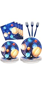This is a perfect set for a party. Includes everything you need. So much bang for your buck. The colors and design are amazingly cool. My kid can't wait for his space party. Does not disappoint.