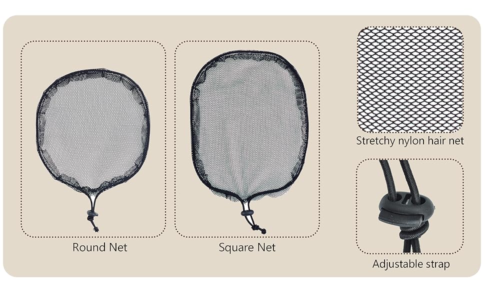 6 Pcs Black Weaving Net Cap Elastic Drawstring Ponytail Hair Net for Making Afro Puff Hair Bun Hair Wig Making Tools for Women (3 Pcs Round,3 Pcs Square)