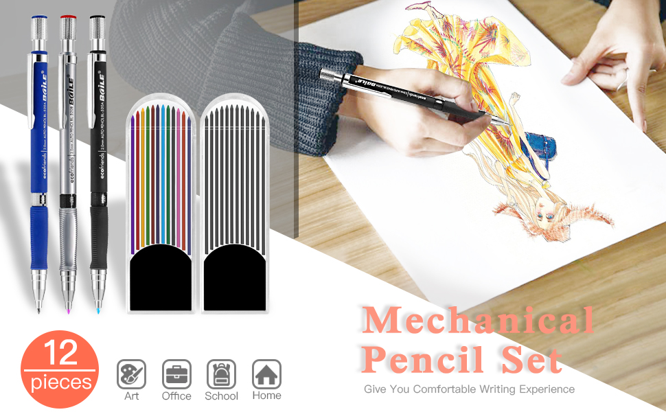 The ExcelFu 6 Pieces 2.0 mm Mechanical Pencil Set is designed for professionals and creatives, featuring a comfortable metal and rubber grip, a built-in sharpener, and a total of 72 lead refills. This versatile set is perfect for drafting, writing, and artistic endeavors, ensuring you have the tools you need to express your ideas effortlessly.