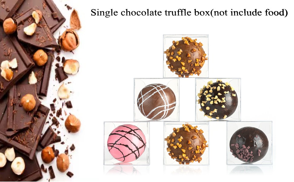 The SLShePack 70 PCS Clear Single Chocolate Truffle Boxes are compact 1.57-inch transparent cardboard boxes designed to elegantly showcase single chocolates or small treats. Their flat-pack design saves storage space, making them perfect for weddings, parties, and special occasions where presentation matters.