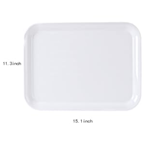 This set of two 15.1" x 11.3" white melamine serving trays offers a durable, lightweight, and BPA-free alternative to ceramic. Designed for both indoor and outdoor use, they resist shattering and scratches while being easy to clean and stackable for efficient storage.