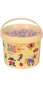 The Hama Beads Bag includes approximately 1000 assorted midi fuse beads, perfect for children aged 5 and up. Crafted from durable polyethylene, these beads foster creativity, literacy, and spatial awareness through easy-to-use mosaic art projects. With no assembly or batteries required, this kit offers a vibrant, hands-on crafting experience that has earned a 4.6-star rating from over 24,000 reviews.
