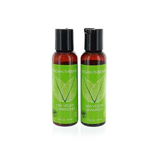 Travel kit with Vegan shampoo and conditioner for unhealthy, thinning hair without harsh chemical ingredients. Certified as 100% vegan - each ingredient is derived from non-animal sources with no animal testing. Clinically tested.