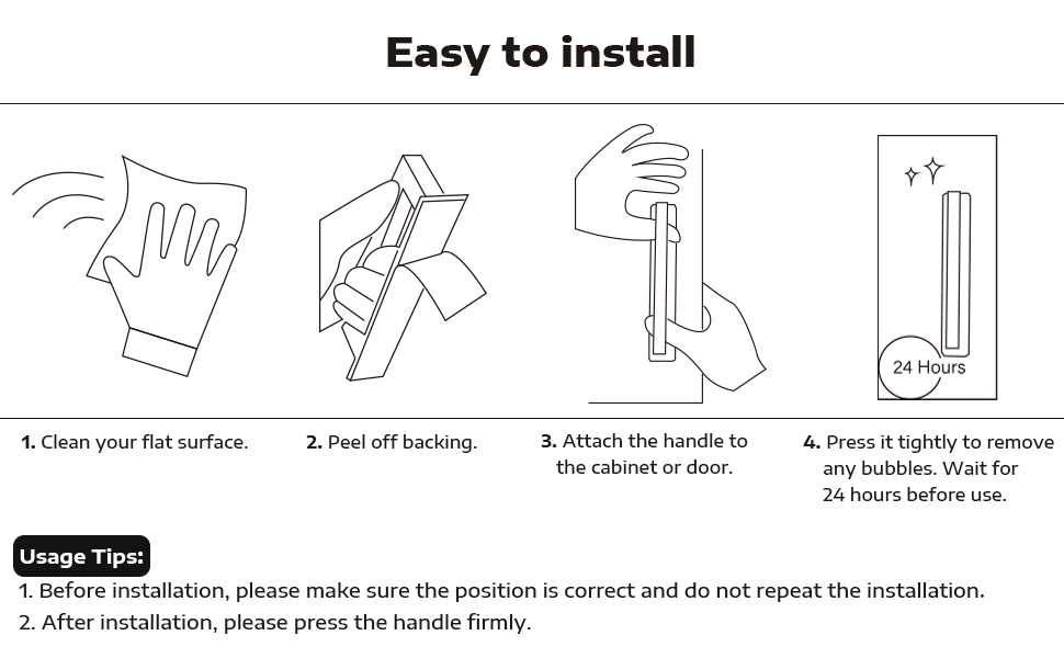 This 2-pack of 6-inch adhesive cabinet handles features premium matte black stainless steel construction with heavy-duty double-sided tape for a secure, drill-free installation. Designed for versatile use on cabinets, drawers, glass sliding doors, and more, these sleek handles combine durability with effortless style, backed by a 12-month risk-free trial.