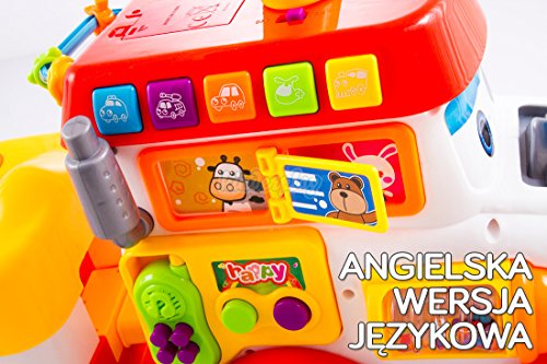Ride on/push along kids train helps your child practice standing and walking. The carriage can be easily dismantled from the train. It serves as a seat while attached to the train. The train without the carriage is perfect for playing with as pusher. The train has a colourful piano with nice tunes and music. It has also many surprise toys that will catch your child's attention. It can also serve as potty. This toy allows your child to develop physical fitness. FEATURES: light, sound, walker, pusher, ride-on, potty, colourful modern design CE Certificate.