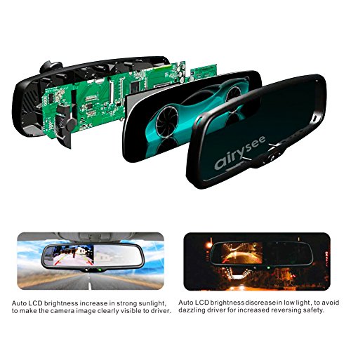 Airysee, known as a worldwide registered brand for in-car Video Electronics, is one of the most desired brands in North America, Europe and Asia. AS-43LAB is a multifunction rearview mirror with 4.3 inch LCD car camera/DVD/VCD dual video display monitor for special car. When reverse gear is engaged, the LCD display will show up the backup camera shoot on the screen automatically. Car parking camera is not included in the item. If necessary, please purchase quality multifunction backup camera by clicking below link: www.amazon.com/dp/B0190820QE It equips with special microphone which can be installed any where the user like. Built-in super power and high fidelity speaker, the voice can be transmitted so clearly that you can enjoy the pleasant communication (auto display the incoming call No. and answer hands free) while driving. In the meantime, AS-43LAB enjoys automatic adjust of brightness to get better picture at any bright environment. 6 kinds of OEM style replacement brackets (based on car model) are optional to keep original car style perfectly after installation. Easy to install by easily replacing the original bracket. Specifications: 4.3 Inch TFT LCD Widescreen Rearview Mirror Monitor Aspact: 16:9 Resolution:480*272 Power Supply:DC12V Audio power:2W Bluetooth version:V2.0 Signal System:PAL/AUTO/NTSC Two Video Inputs:AV1-DVD and so on. AV2-Camera MIC:Built-in high sensitive microphone Power Consumption:4W(Working)/0.3W (Standby) Legal Statement: Copyright 2015 by Evosen Inc. (Amazon ID: Airysee)