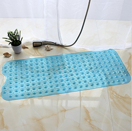●Available in Clear, Blue and Green ●Extra Long Bath Mats:16 W x 39 L Inches,Fits Any Size Bath Tub ●Material:Environmental Protection Non-toxic Material,Made of 100% allergen-free PVC.●Provides Effective Slip Resistance in the Bathtub.Over 200 Suction Cups for Reliable Non-slip Traction. ●Durable,Machine Washable,Abrasion-resistant and Easy-to-clean nstructions for Product Use and Care: Thoroughly clean both sides of bath mat with water before use. Clean and wet the surface intended for mat placement. Place the bath mat flat on the floor of tub or designated bathroom surface. Step or press firmly onto bath mat until all suction cups are anchored to surface. Before use, make sure bath mat is securely adhered to designated bath surface. Clean periodically with mild detergent and water. Avoid direct sunlight to reduce risk of damage to mat.
