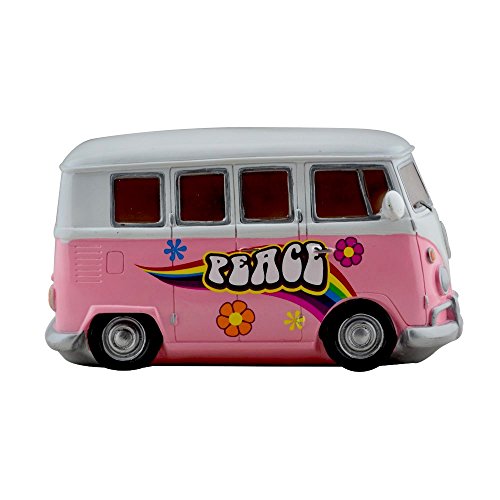 Classic hippie peace loving German bus shaped LED glowing decoration lamp, perfect gift for idealists, peace and car lovers. Adds a unique accessory of history to your car collection. Nice decoration accessory for living room, kids room, bedroom or office. Long lasting led lights are powered with 3 AAA batteries (not included) with switch at the bottom.