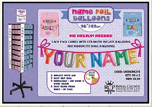 Name Foil Balloons are a perfect finishing touch for personalising any birthday celebration and making it that little bit extra special. Pack comes with 6 x foil balloons and a straw for inflating. The balloons are easy self seal and refillable, so they could be used over & over again. Each letter has built in tabs for easy hang, and completing the pack is a piece of ribbon for hanging.
