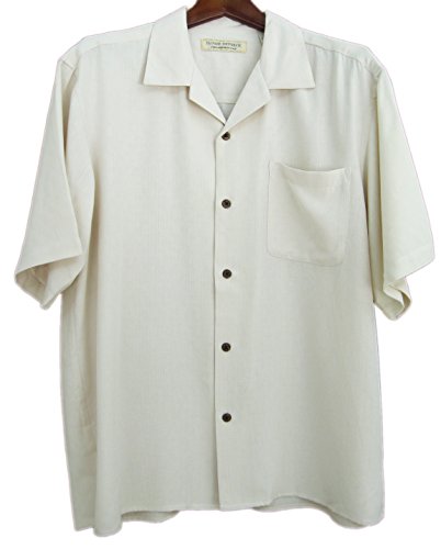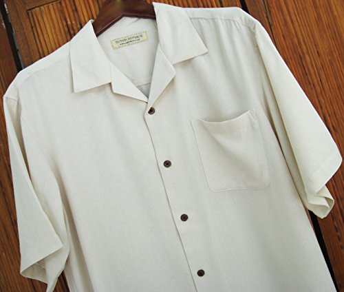 World Renown-Island Republic brand Retail Price is $75 plus tax! 100% Silk Gorgeous Ivory textured pattern . This shirt will be an instant classic in your closet Medium- 30 inches Long by 23 inches armpit to armpit (46 total chest inches of fabric) Large - 31 Inches Long by 24 Inches armpit to armpit (48 total chest inches of fabric) XL- 32 inches Long by 25 inches armpit to armpit (50 total chest inches of fabric) XXL- 33 inches Long by 27 inches armpit to armpit (54 total chest inches of fabric) 100% Silk Real Coconut shell buttons Left Chest Pocket Very soft to the touch Short Sleeves