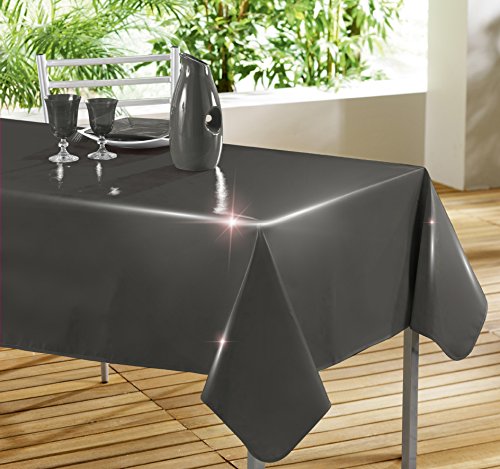 This Rectangular Oilcloth PVC Wipe Clean Tablecloth measures 140cm x 240cm (55" x 94") and features a glossy anthracite grey finish. Designed for both indoor and outdoor use, it boasts a hemmed edge and is perfect for families, ensuring a mess-free dining experience.