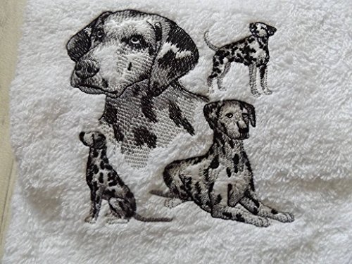 Made to order. Available in hand towel or bath towel size. Embroidered with Dalmatian Dog Pattern. 4 profiles of the breed will be placed in lower half of towel. Name can be added to personalise. Please choose this option check out. Towel is 100% cotton and white.