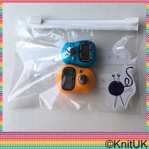 KnitUK Tally Counter - LCD (Finger-Held). Pack of 2. Orange & Turquoise Digital Knitting Row Counters
