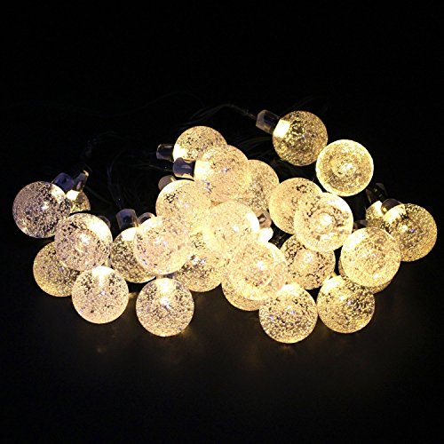 Feature: 1. The solar string lights have been tested and certified as IP65 waterproof graded.The total length of the unit is 19.7 ft including a 4.5ft lead line. Perfect for indoor or outdoor decorations. 2. Solar powered with our string lights will be rechargeable and light up automatically. Very essy to use with just two switches - Power (On/Off) and Mode (Flashing/Static) - and a stake. 3. Work by charging the solar energy into electric energy with a full charge of 4-8 hours, it can continuously work on steady on mode 8-15h, flash mode 10-20h. 4. Working temperature between -20 ℃ to +60 ℃, suitable for different weather, including heavy rain and snow, perfect for indoor and outdoor use. Notice: 1. The light is designed for ourdoor use perfectly for receiving direct sun light. 2. Please avoid putting the unit under shadows from buildings, tree and wall. 3. Please avoid street light and floodlights to impact the PIR sensor because the unit is designed to illuminate in dark conditions and may not operate if other source of strong lights reflects on the panel. 4. Please set the button to "ON" status when the unit get power supply in daytime. Then the light will light up automatically at dark and may turn off automatically when ambient light is too strong(above 15lux). Package included: 1 x Diateklity 30 LEDs Crystal Ball Globe Solar String Lights 1 x Solar Panel with Ground Stake 1 x User Manual Tips: For first use, please charge it at least 6 hours. Best working temperature: 20℃- 25℃, if temperature is less than 20℃, charging function will weaken.
