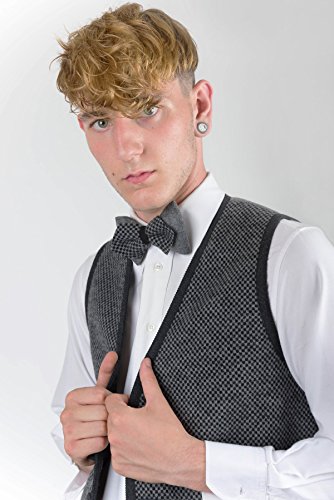 Double Bow tie, already knotted in woolen fabric gray color and salt and pepper pattern. The fabric is 100% boiled wool, typical Italian fabric. The strap is in Alcantara black colour and lined with a light gray satin ribbon. The neck circumference is adjustable. Thanks to a comfortable hook, the bow tie is easy and fast to wear. The bow tie gives a touch of character to each outfit and along with a matching waistcoat and pocket handkerchief are a multi use pair for every occasion. Exquisite Craftsmanship made in Italy. All Old Fashion Sartoria products are designed and handmade within our workshop by skilled hands. The craftsmanship, from clothing to accessories for men and women, are inspired by the tradition of Made in Italy and represent the Italian excellence.