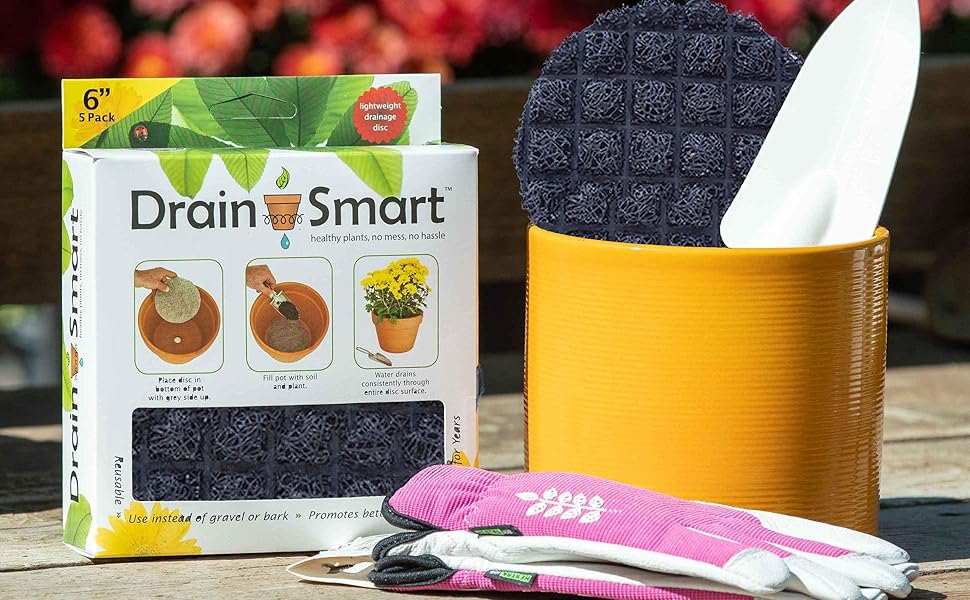 Drain Smart 6” Drainage Discs offer a lightweight, reusable alternative to gravel and bark for potted plants. Featuring a 3D mesh design, they prevent soil loss and improve drainage to minimize root rot. Easy to trim and install, these discs keep your indoor and outdoor gardening spaces clean and healthy. Proudly made in the USA, they deliver sustainable, long-lasting performance for container gardening enthusiasts.