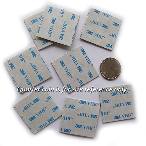 eQualle(TM) VHB is suitable for bonding many kinds of material with flat hard surface like sealed wood, plastics, glass, composites, metal, etc. Meets UL746C. VHB 3M Square Adhesive Replacement Kit: 8 of 1.5 x 1.5 inch Square Double-sided sticky 2 of Alcohol Pad Transparent adhesive one side sticky How to use: Make sure the the surface of both parts you want to glue together is flat Make sure the temperature during application is at least room or a little higher (70F - 90F) Peel the film from one side and apply to the chosen spot. Wait for about 30 min Peel other side and apply to the other chosen spot. Wait for 2 - 4 hours before use