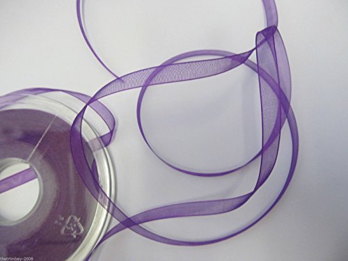 Sheer organza ribbon available The quantity-25 metre rolls. The width = 15 mm The Colour= Purple The ribbon is ideal for decorations of all types....wedding stationary,decorations,card making,gift wrapping , Christmas etc.