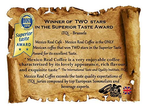 Quality and certifications Mexico Real Cafe is a Specialty Coffee, 100% Pure Arabica Altura Coffee (Cafe de Altura). Altura is the Finest Grade of Mexican Coffee Grown, Altura means "High-Grown". Mexico Real Cafe was the only Mexican Coffee winner of the Superior Taste Award, 2016 . Growth and Production Our Maya Elixir is an Exotic Coffee consisting of the Most Excellent Mexico's High Altitude Grown Arabica Coffee: Strictly High Grown (over 1600 mamsl). It is Traditionally Grown in Shade in the Fertile Volcanic Maya Mountains of the Triunfo's Biosphere Reserve in Chiapas - Mexico, next to Guatemala. Our coffee plantations do not pollute the environment nor damage the ecosystem; our coffee plants grow under tall trees of the tropical rainforest. They are grown traditionally and require a sustainable crop rotation. Coffee Processed? Our coffee beans are picked individually by hand and follow a wet and sun-dried process. Our Speciality Coffee is then Roasted in Small Batches. Cupping Profile Maya Elixir brings a Full-Bodied Coffee, with a Bright and Pleasant Fruity and Citrus Flavour; and a Strawberry, Peach, Chocolate & Honey Aroma. Its Flavour is characterized by Deep Peach & Strawberry Notes with a Long Caramel and Nutty Aftertaste.