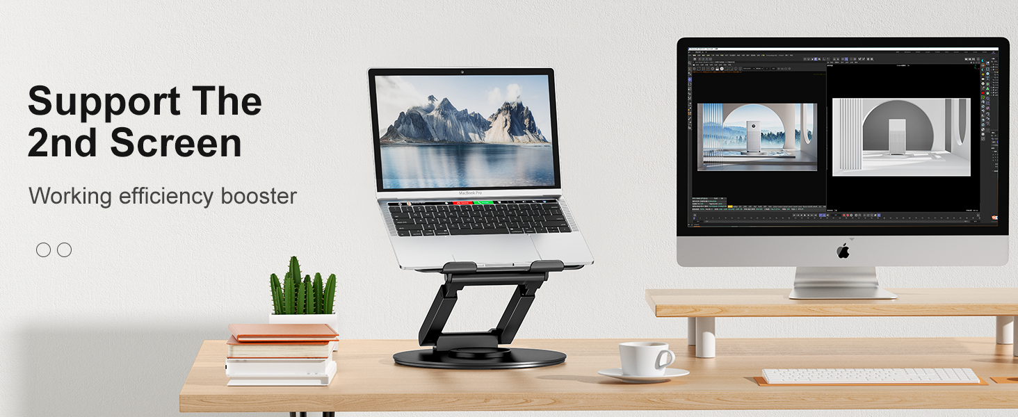 The tounee Telescopic Laptop Stand is a sleek, height-adjustable riser with a 360° swivel base, designed to support laptops from 10" to 17" up to 22 lbs. Crafted from durable aluminum alloy, it promotes ergonomic sit-stand working postures, reduces muscle tension, and enhances productivity while saving desk space with its foldable, portable design.
