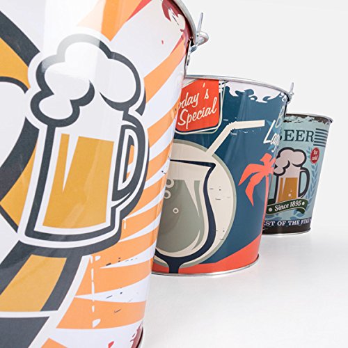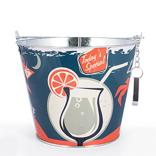 This Vintage Style Metal Bucket by Vintage Coconut combines a durable 390g metal construction with a built-in bottle opener, sized at a convenient 24.5 x 24.5 x 19 cm. Perfect for stylishly chilling beverages while adding a nostalgic touch to any social setting.