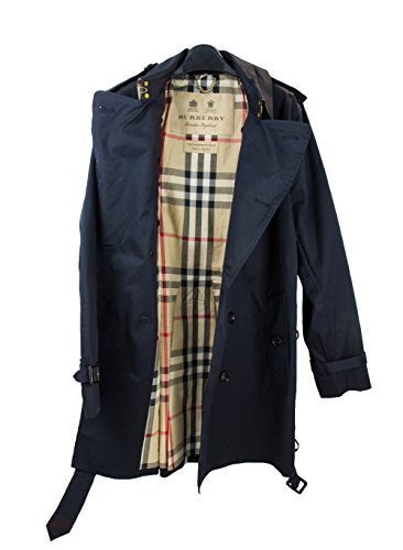 Burberry tailored-fit trench coat, the Sandringham is cut to contour the body for a streamlined look. The coat is made in England from weatherproof cotton gabardine, invented by Thomas Burberry in 1879. A classic for all seasons and occasions, the trench can be worn belted over tailoring or open and relaxed over denim and T-shirts. Inspired by the Burberry Archive, the coat features the iconic check undercollar. Color: Navy Materials: Outer: 100% cotton Check lining: 100% cotton Sleeve lining: 100% viscose Buttons: buffalo horn Size: EU 50 / UK 22