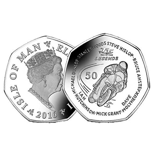 Brand new for 2016, Isle of Man Treasury has unveiled a specially 50p commemorating some of the biggest names to have contested the world-famous motorcycle road racing event. The legal tender coin features seven of the biggest stars in the events history, celebrating their outstanding achievements around the Isle of Mans iconic Mountain Course. Bruce AnsteyDave MolyneuxIan HutchinsonMick GrantMichael DunlopStanley WoodsSteve Hislop